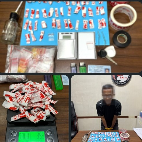 Dari hasil penggeledahan, petugas menemukan sebanyak 45 paket sabu dengan berat keseluruhan 39,5 gram, satu unit timbangan digital, satu pak plastik klip bening, dua gulung lakban bertuliskan “fragile” warna merah dan putih, satu lakban hitam, satu alat hisap sabu (bong), dua pipet kaca, serta dua korek api gas. Selain itu, turut diamankan satu unit sepeda motor Honda Beat Street warna hitam bernomor polisi E 4662 XY yang digunakan pelaku untuk menjalankan aksinya.